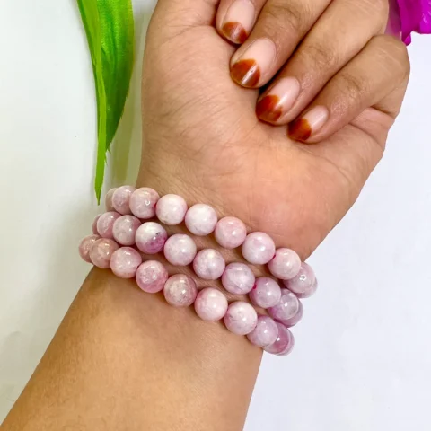 Kunzite Heart Chakra Stone Round Beaded Bracelet 8 MM Stretch Bracelet