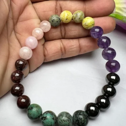 Aquarius Zodiac Sign Crystal Stone Bracelet 8 mm Pink Morganite ,Garnet , African turquoise, Hematite , Amethyst, serpentine
