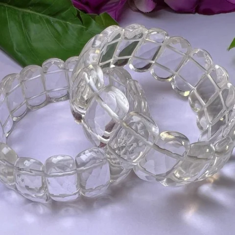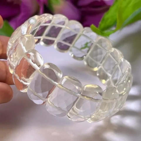 Himalyan Crystal Quartz Stone All Chakras Rectangle Beaded Bracelet 25 MM Stretch Bracelet