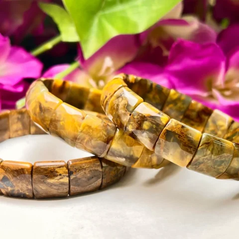 PIETERSITE Stone Rectangle Beaded Bracelet 15 MM Stretch Bracelet