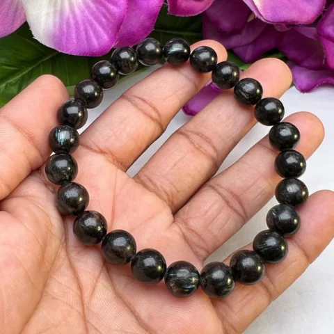 Nuummite Stone Bracelet Round Beaded Bracelet 8 mm Stretch Bracelet