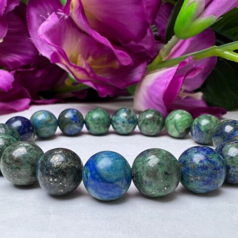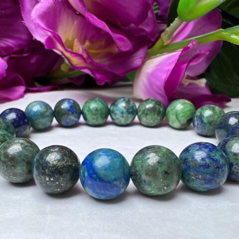 Azurite Malachite Round Beaded Bracelet 12 MM Stretch Bracelet