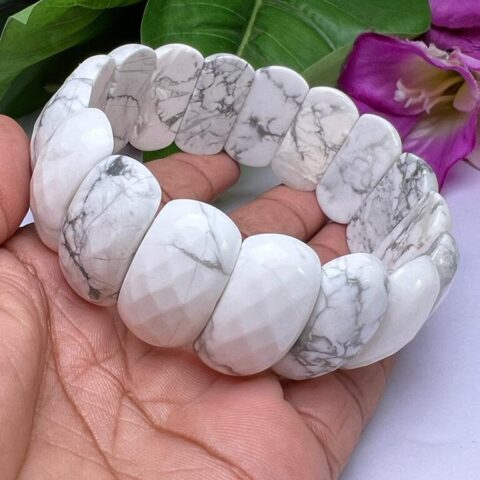 White Barite Stone Round Beaded Bracelet 8 MM Stretch Bracelet