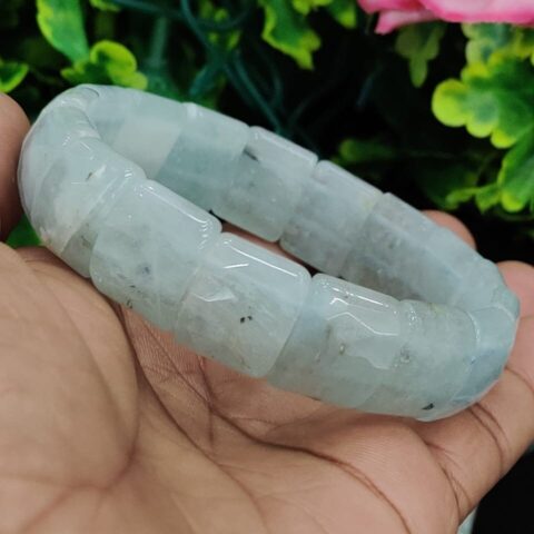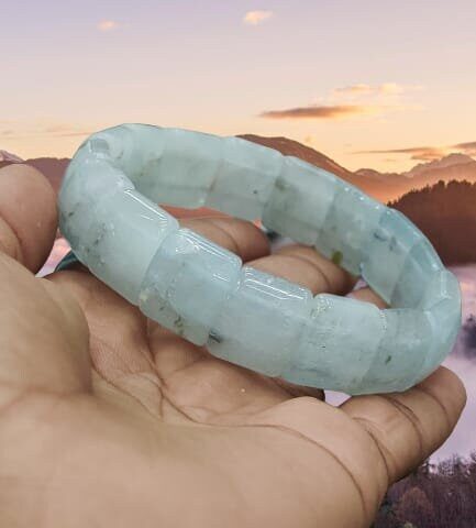 Aquamarine Stone rectangle Beaded Bracelet 15 MM Bracelet For Anxiety & Stress Relief Stretch Bracelet
