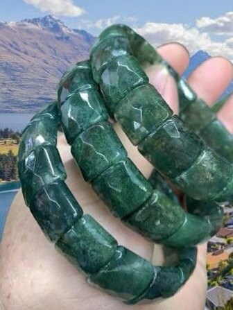 Moss Agate Stone rectangle Beaded Bracelet 15 MM Stretch Bracelet