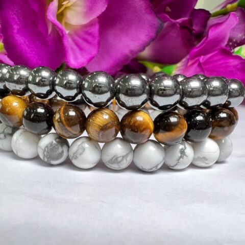 GEMINI Bracelet Tiger Eye , Hematite , Howlite Pack Zodiac Horoscope Astrology May June Birthday Set 7.5 inch 8mm