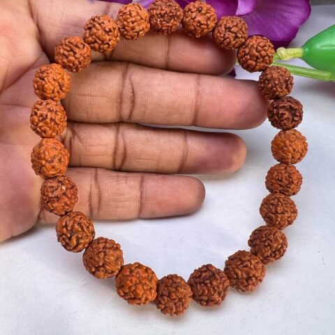 Panch Mukhi Rudraksha Beads Stretch 8mm Bracelet Healing for Men & Women, Control Stress And brings positive energy.