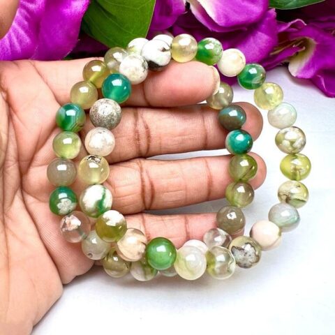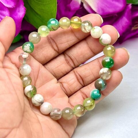 Green Flower Agate Stone Round Beaded Bracelet 8 MM Stretch Bracelet