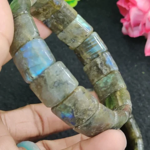 Rainbow Labradorite Stone Rectangle Beaded Bracelet 15 MM Stretch Bracelet