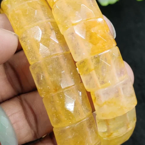 Citrine High Metaphysical Energy Stone Rectangle Beaded Bracelet 15 MM Stretch Bracelet