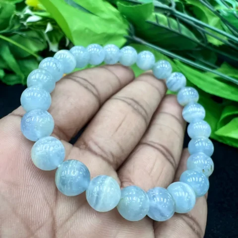 Argentina Lemurian Aquatine Calcite, Blue Onyx Gemstone AAAAA+++++ Round 8MM Stretch Bracelet