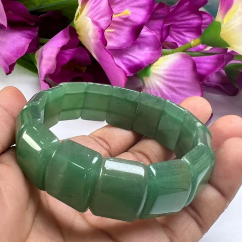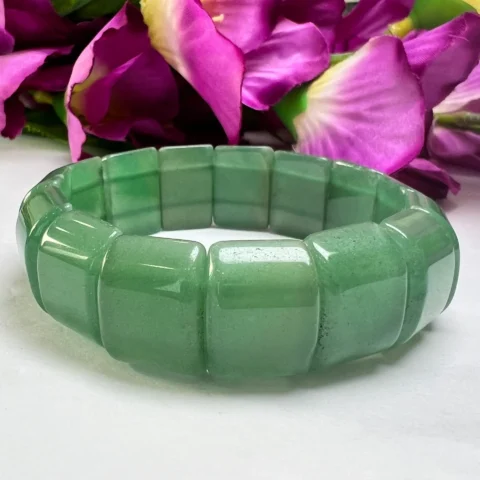 Green Aventurine Stone Rectangle Beaded Bracelet 15 MM Stretch Bracelet