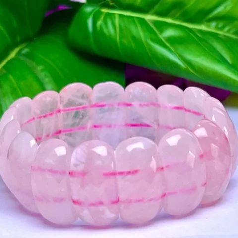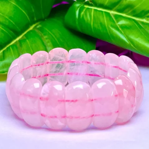 Rose Quartz Stone All Chakras Rectangle Beaded Bracelet 25 MM Stretch Bracelet
