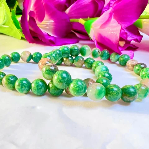 Green Stone Round Beaded Bracelet 8 MM Stretch Bracelet