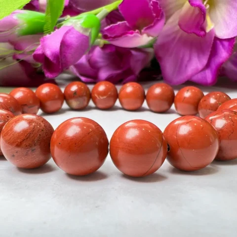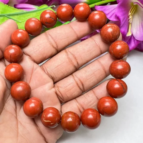 Red Jasper Round Beaded Bracelet 12 MM Stretch Bracelet