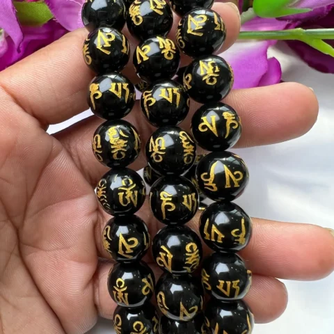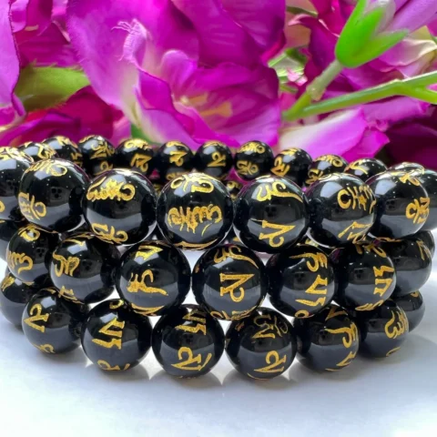 Om Mani Padme Hum Black Obsidian Stone Tibetan Round Beaded Bracelet 6 MM 8 MM 10 MM Stretch Bracelet
