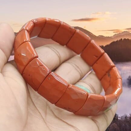 Red Jasper rectangle Beaded Bracelet 15 MM Stretch Bracelet