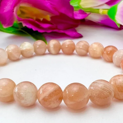 LEO Bracelet Peach Moonstone, Pyrite, Carnelian Pack Zodiac Horoscope Astrology July August Birthday Set 7.5 inch 8mm