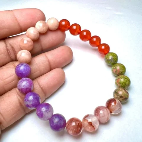 SACRAL Chakra Natural Stone Crystal Bracelet 8mm Red Lithium Quartz, Carnelian,Peach Moonstone, Lepidolite,Unakite Gemstone Healing Bracelet