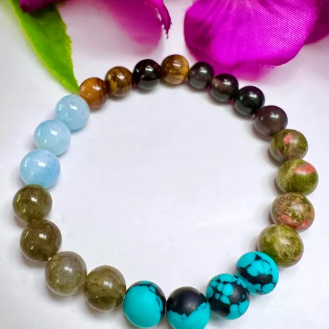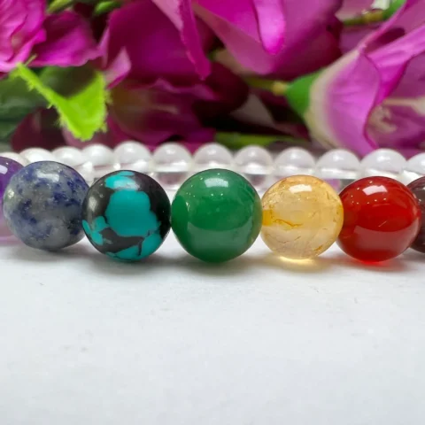 Satyaloka Crystal Quartz with 7 Chakra Healing Bracelet Round Beaded 8MM Bracelet Stretch Bracelet