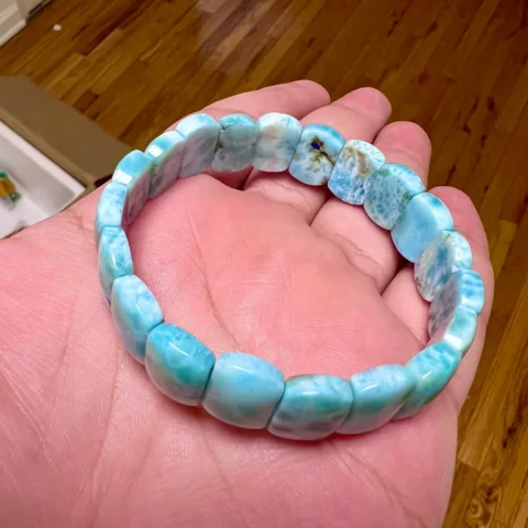 Larimar Stone From Dominican Republic Rectangle Beaded Bracelet 12 MM Stretch Bracelet AAAAA +++++ Quality