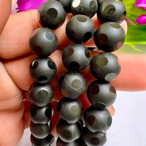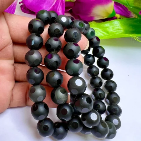 Black Tourmaline Round Beaded Bracelet 12 MM Stretch Bracelet
